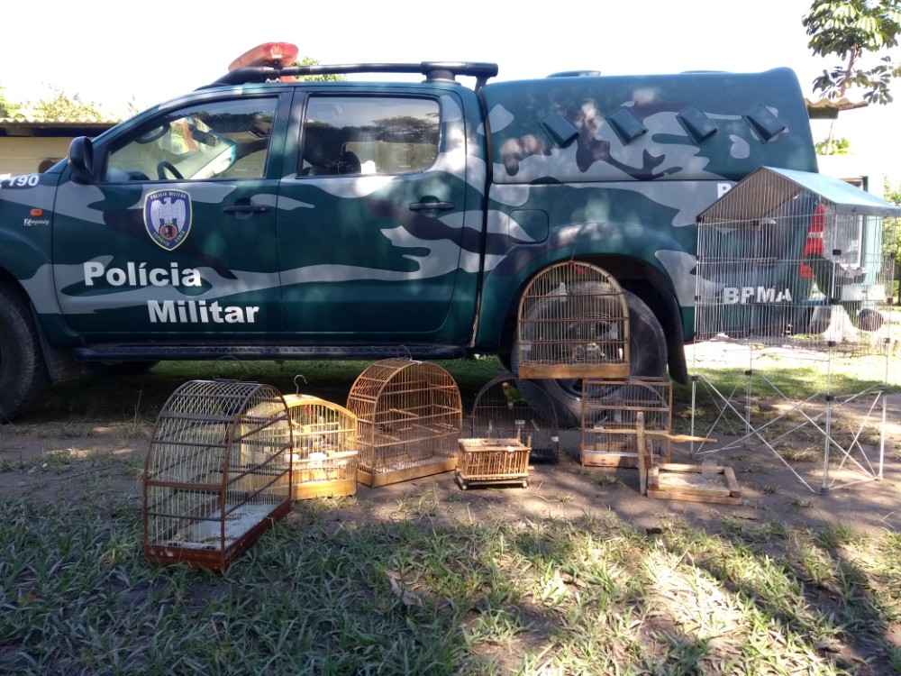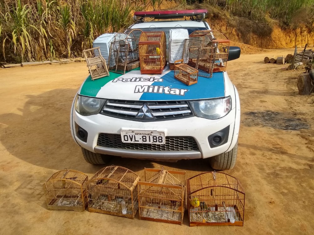 Já na região de Ibatiba, também na quarta-feira (29), militares do BPMA flagraram em uma residência na localidade de Água Limpa, diversas gaiolas de madeira, sendo constatados nove pássaros silvestres mantidos em cativeiro de forma irregular. Entre eles estavam cinco “trinca-ferros”, um “bigodinho”, um “coleiro”, um “tico-tico” e um “catatau”, este último considerado animal em risco de extinção. Foram apreendidas ainda quatro armadilhas para captura de pássaros: dois alçapões e duas redes batedeiras. Uma pessoa foi responsabilizada pelo crime de ter em cativeiro pássaros da fauna silvestre sem a devida permissão, licença ou autorização da autoridade competente.