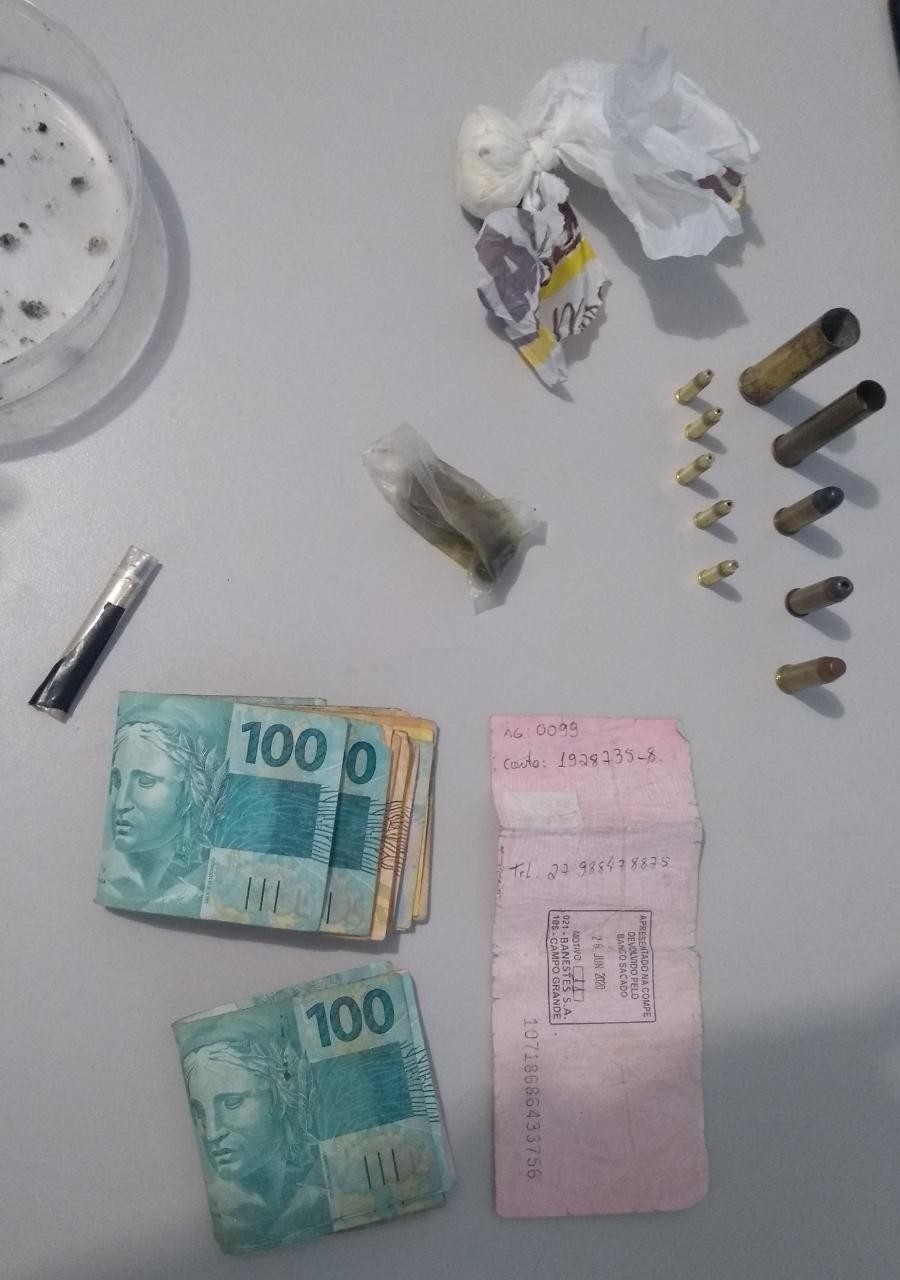 No mesmo horário, no distrito de Vila Pontões, zona rural do município, outra equipe de policiais cumpriu um mandado de busca apreensão domiciliar, que resultou na detenção de um casal e na apreensão de quase dois quilos de maconha, 394 gramas de crack, 12 papelotes de cocaína, 10 pedras de crack, quatro comprimidos de ecstasy, nove munições, uma espingarda de pressão e um simulacro de arma de fogo, além de R$ 1.240,00.
