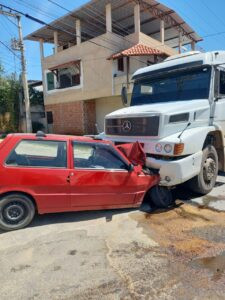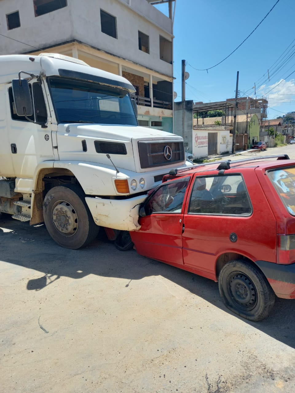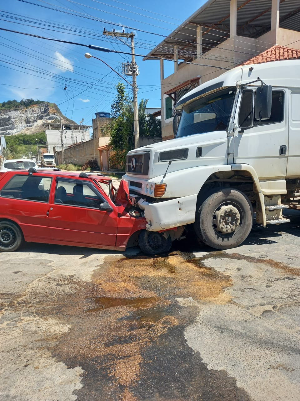 Uma carreta arrastou um Fiat Uno vermelho por mais de 100 metros nesta sexta-feira no bairro IBC, próximo a sede da Polícia Federal em Cachoeiro de Itapemirim.